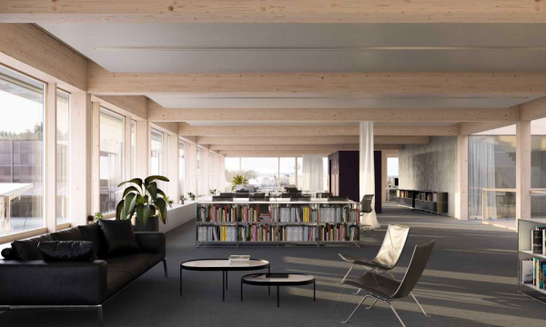 Der Neubau des Büros wird vom Untergeschoss bis zur Decke über dem Erdgeschoss in Massivbauweise erstellt, darauf folgen vier Geschosse in Holz mit einem aussteifenden Betonkern. Das Tragwerk unterhalb des Autostores Lagersystem unterliegt hohen Verformungsbeschränkungen. Aus diesem Grund wird das Tragwerk in Massivbauweise ausgeführt und mit Pfählen in den Felsen fundiert. Das Parkdeck über dem Autostore wird aus Holz errichtet.